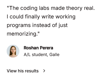 Eight years teaching A/L ICT. Trained 800+ students. Built the method that works.